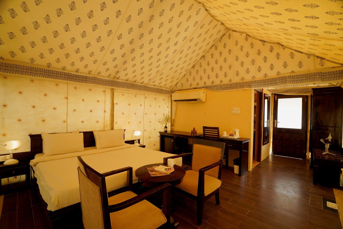 A visit to Jaisalmer, the Golden City of Rajasthan, is incomplete without experiencing the magic of the Thar Desert. At Desert Spring Resort Jaisalmer, we invite you to embrace true Rajasthani hospitality with a stay in our Regal Tent – a luxurious accommodation that blends royal comfort with the rustic charm of desert life. Designed for travelers who seek elegance, space, and a touch of grandeur, the Regal Tent is your gateway to a majestic desert holiday.